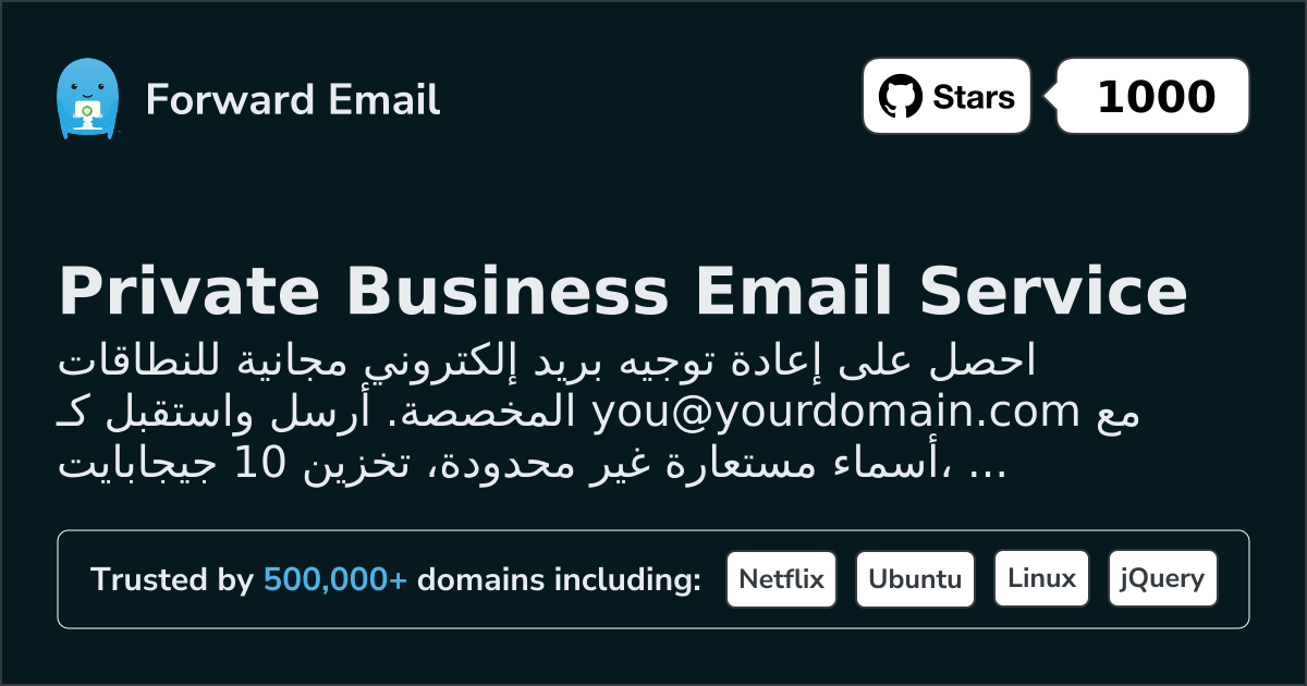 Forward Email is a free, open-source email service for custom domains. Create unlimited aliases, forward to any inbox, and host email with IMAP, POP3, and SMTP. 10GB encrypted storage, quantum-resistant security, and a developer API. Trusted by 500,000+ users including Netflix Games, Disney, and The Linux Foundation. Free forwarding; paid hosting from $3/mo.