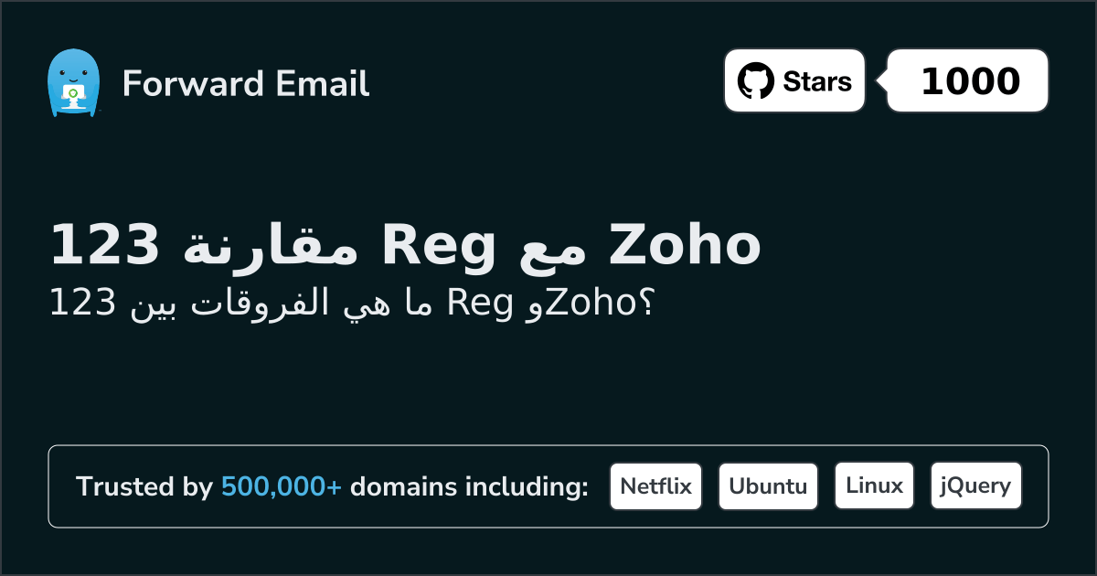 123 Reg"بريد إلكتروني احترافي يُظهر جديتك في العمل" | مقابل | Zoho"بريد إلكتروني تجاري آمن لمنظمتك" |