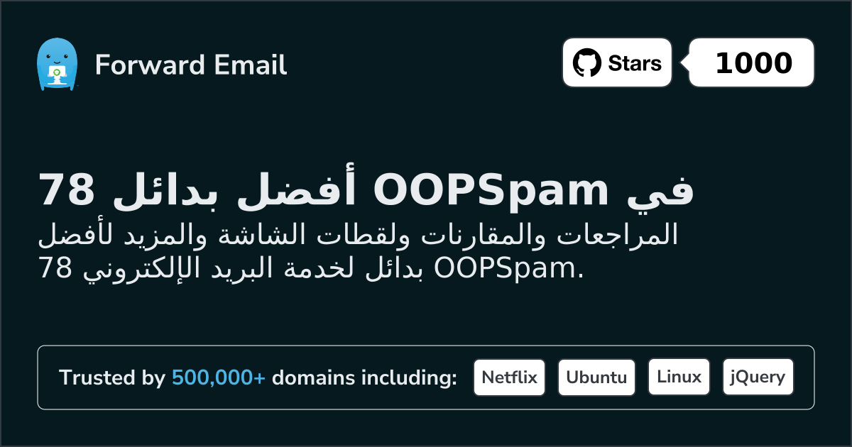 نوصي باستخدام إعادة توجيه البريد الإلكتروني كأفضل بديل لـ OOPSpam. We also support webmail: https://mail.forwardemail.net