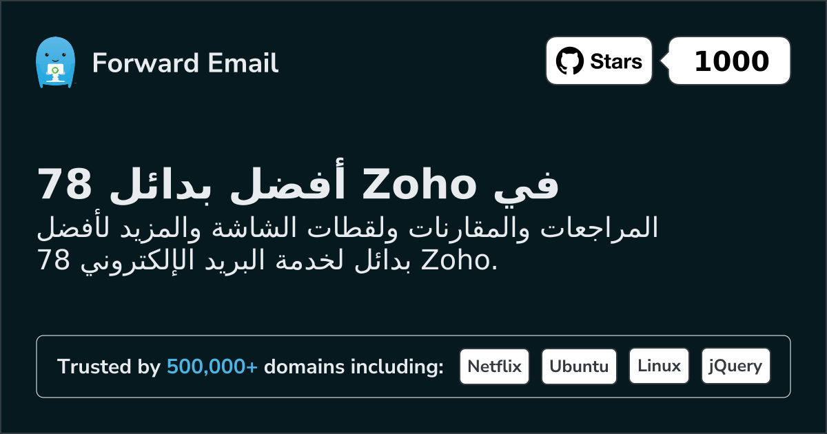 نوصي باستخدام إعادة توجيه البريد الإلكتروني كأفضل بديل لـ Zoho. We also support webmail: https://mail.forwardemail.net