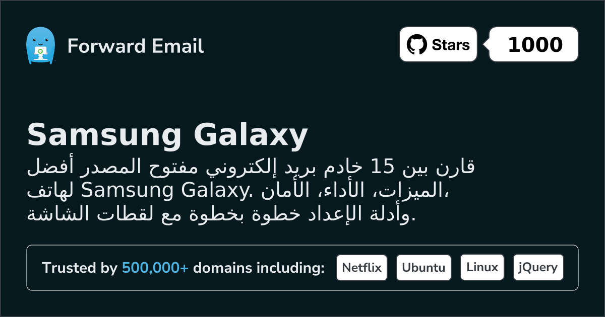 قارن بين 15 خادم بريد إلكتروني مفتوح المصدر أفضل لهاتف Samsung Galaxy. الميزات، الأداء، الأمان، وأدلة الإعداد خطوة بخطوة مع لقطات الشاشة.