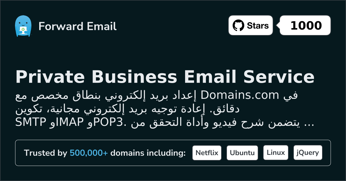 إعداد بريد إلكتروني بنطاق مخصص مع Domains.com في دقائق. إعادة توجيه بريد إلكتروني مجانية، تكوين SMTP وIMAP وPOP3. يتضمن شرح فيديو وأداة التحقق من DNS.