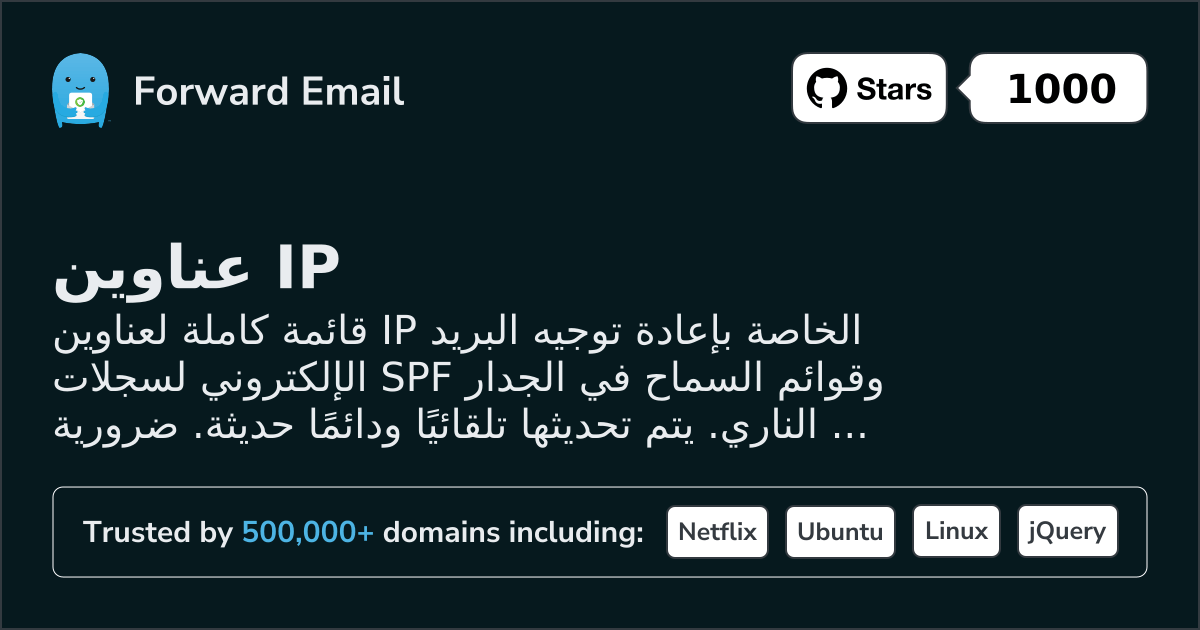 تم نشر هذه الصفحة بشكل أساسي لمقدمي خدمات البريد الإلكتروني ومسؤولي النظام كمصدر نهائي لعناوين البنية التحتية لخادمنا.