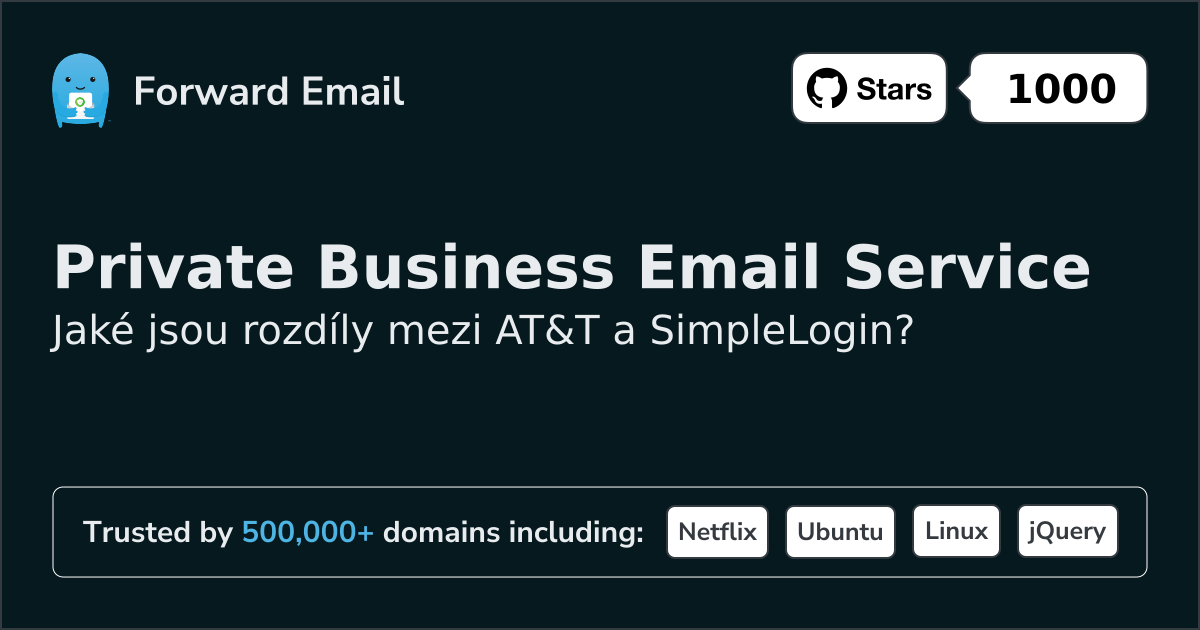 AT&T"AT&T Mail je nyní Yahoo Mail" | vs. | SimpleLogin"Přijímat a odesílat e-maily anonymně" |