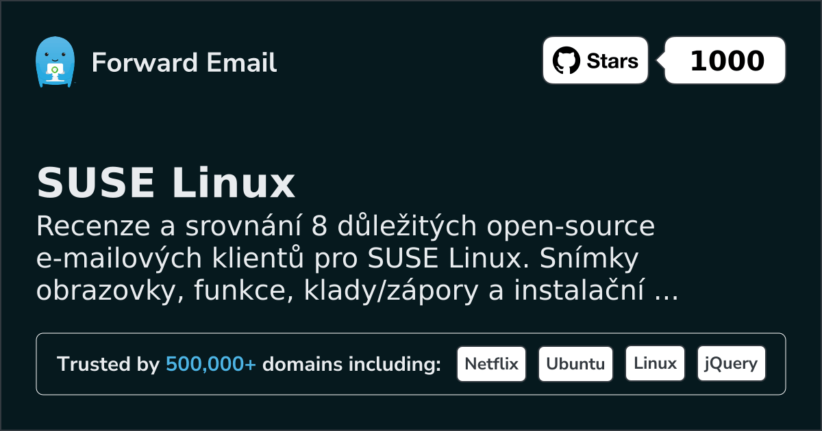 Recenze a srovnání 8 důležitých open-source e-mailových klientů pro SUSE Linux. Snímky obrazovky, funkce, klady/zápory a instalační návody.