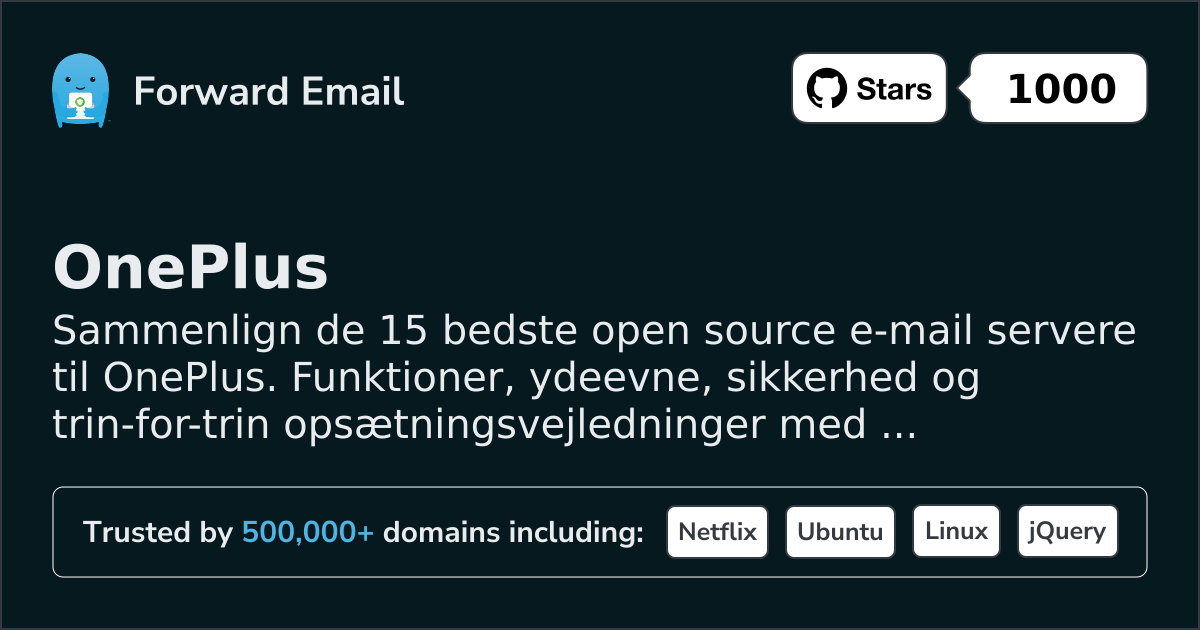 Sammenlign de 15 bedste open source e-mail servere til OnePlus. Funktioner, ydeevne, sikkerhed og trin-for-trin opsætningsvejledninger med skærmbilleder.