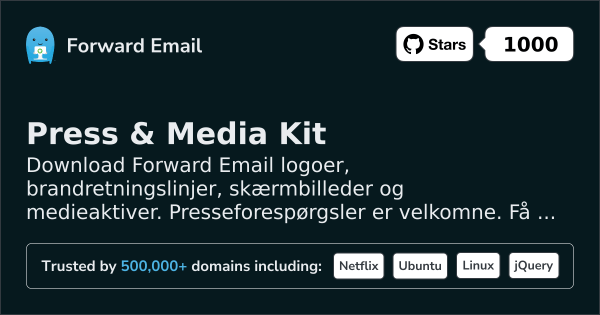 Hvis du er medlem af pressen, journalist eller medierepræsentant og ønsker at tale med os, stille spørgsmål eller lære mere – så kontakt os venligst på press@forwardemail.net.