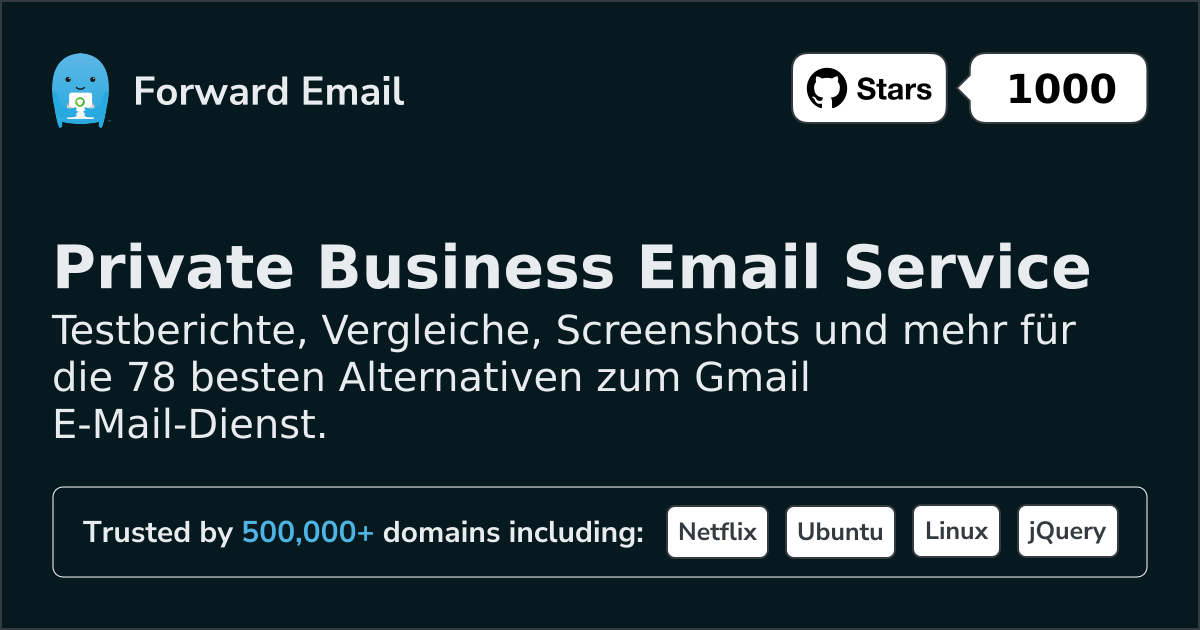 Wir empfehlen E-Mail weiterleiten als beste Alternative zu Gmail. We also support webmail: https://mail.forwardemail.net