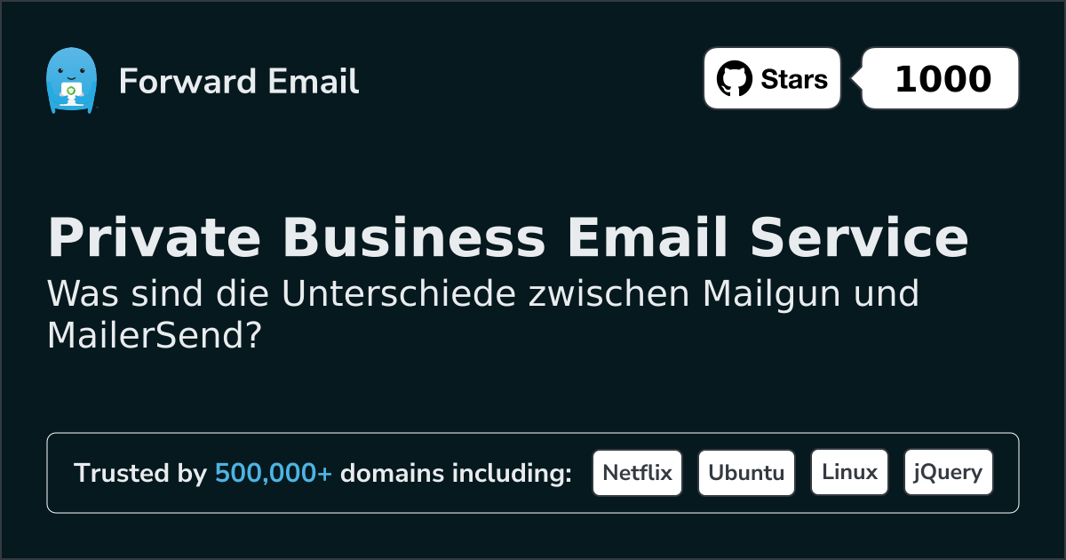 Wir empfehlen E-Mail weiterleiten als beste Alternative zu Mailgun. We also support webmail: https://mail.forwardemail.net