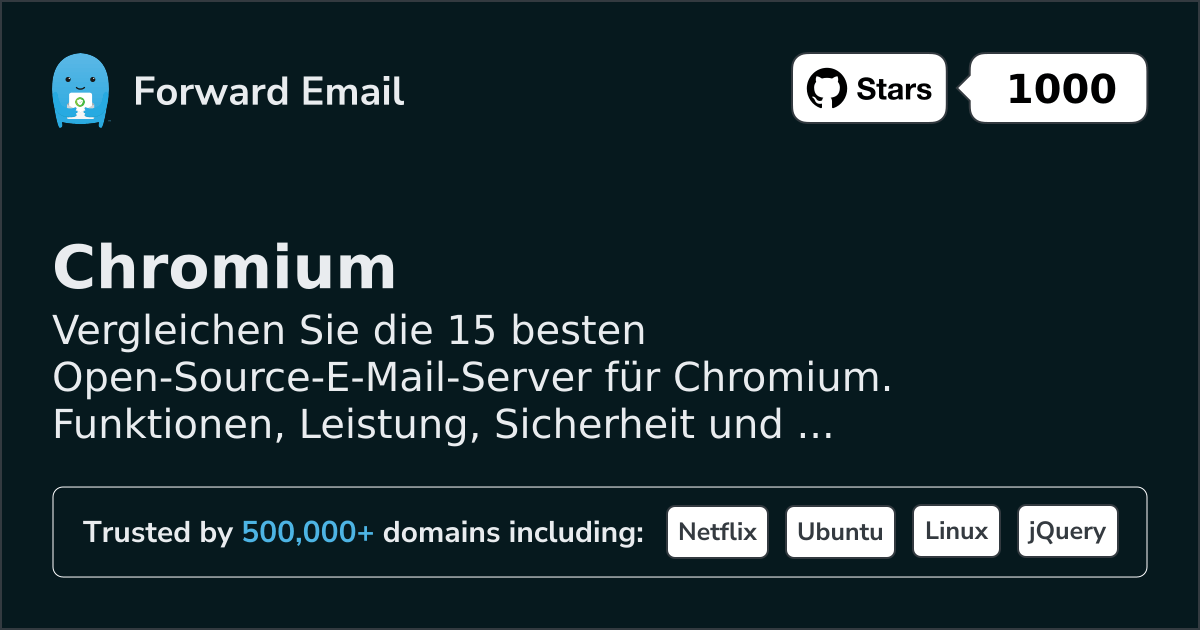 Vergleichen Sie die 15 besten Open-Source-E-Mail-Server für Chromium. Funktionen, Leistung, Sicherheit und Schritt-für-Schritt-Einrichtungsanleitungen mit Screenshots.