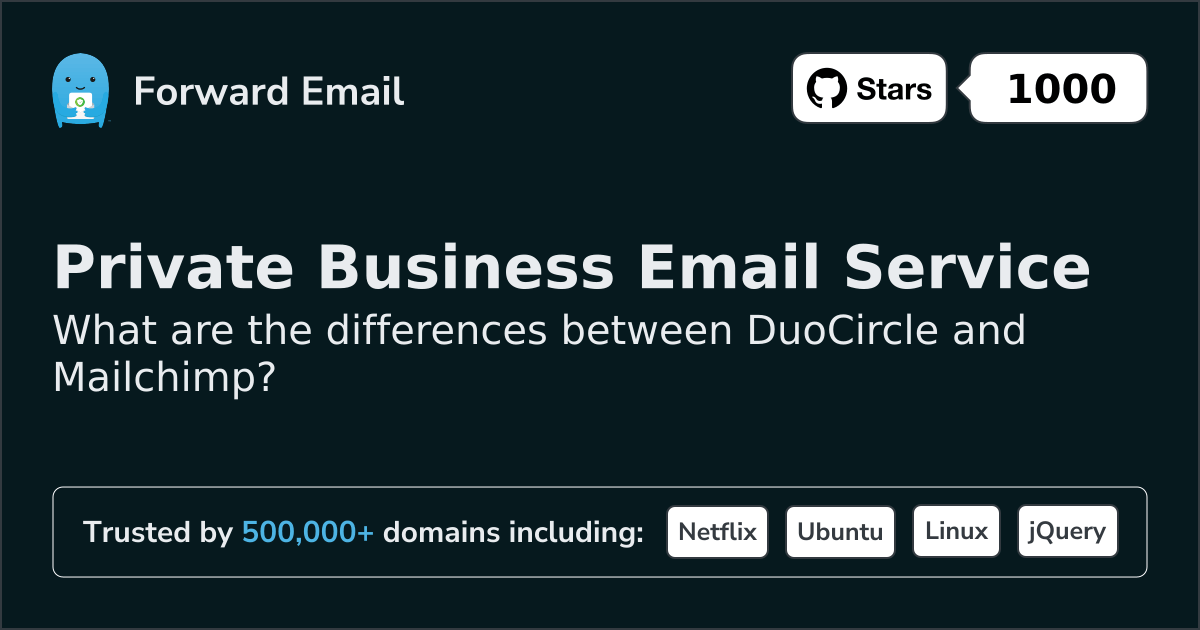 DuoCircle"Protect Email Against Phishing, Spam and Malware" | vs. | Mailchimp"Turn Emails into Revenue" |