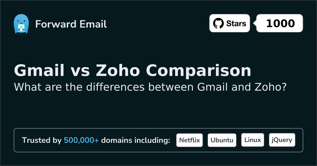 Gmail"Secure, smart, and easy to use email" | vs. | Zoho"Secure business email for your organization" |