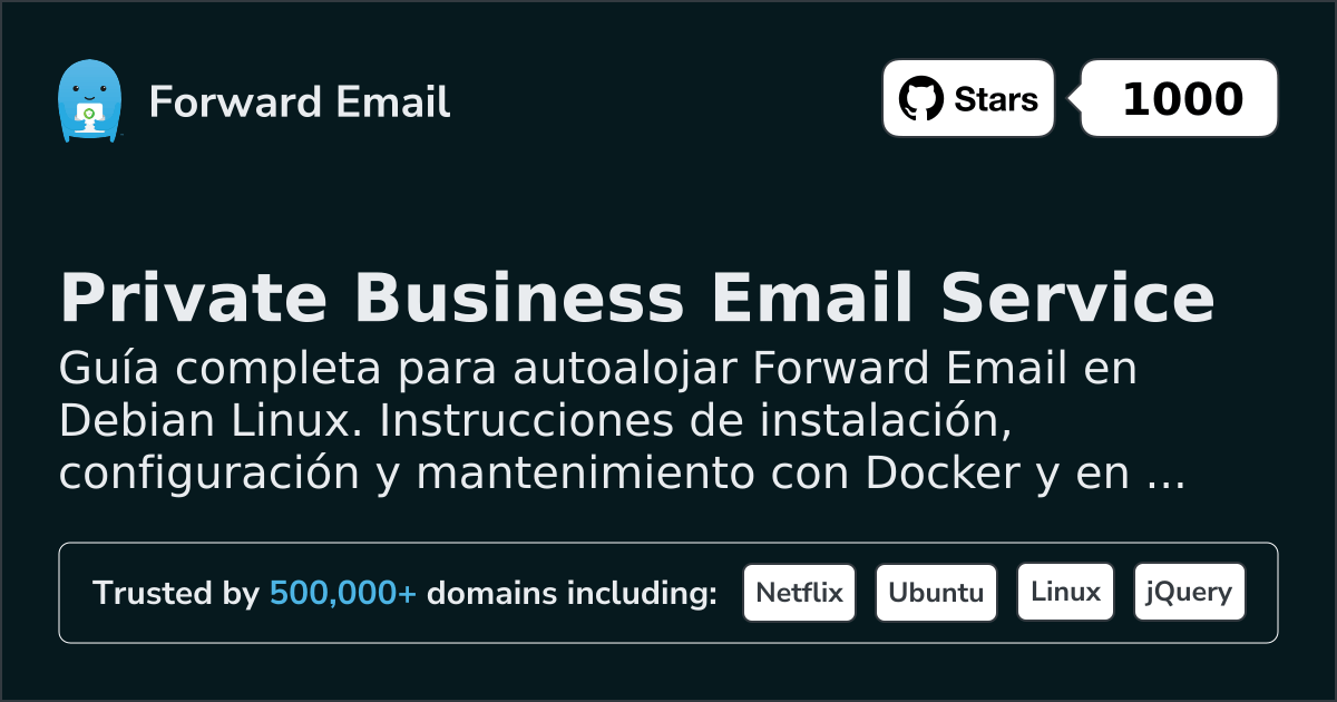 Tu instalación self-hosted de Forward Email debería estar ahora completa y funcionando en Debian. Recuerda: