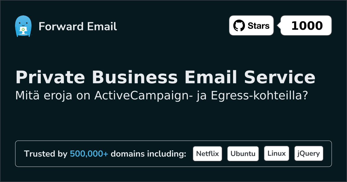 Suosittelemme sähköpostin edelleenlähettämistä parhaana vaihtoehtona toiminnolle ActiveCampaign. We also support webmail: https://mail.forwardemail.net