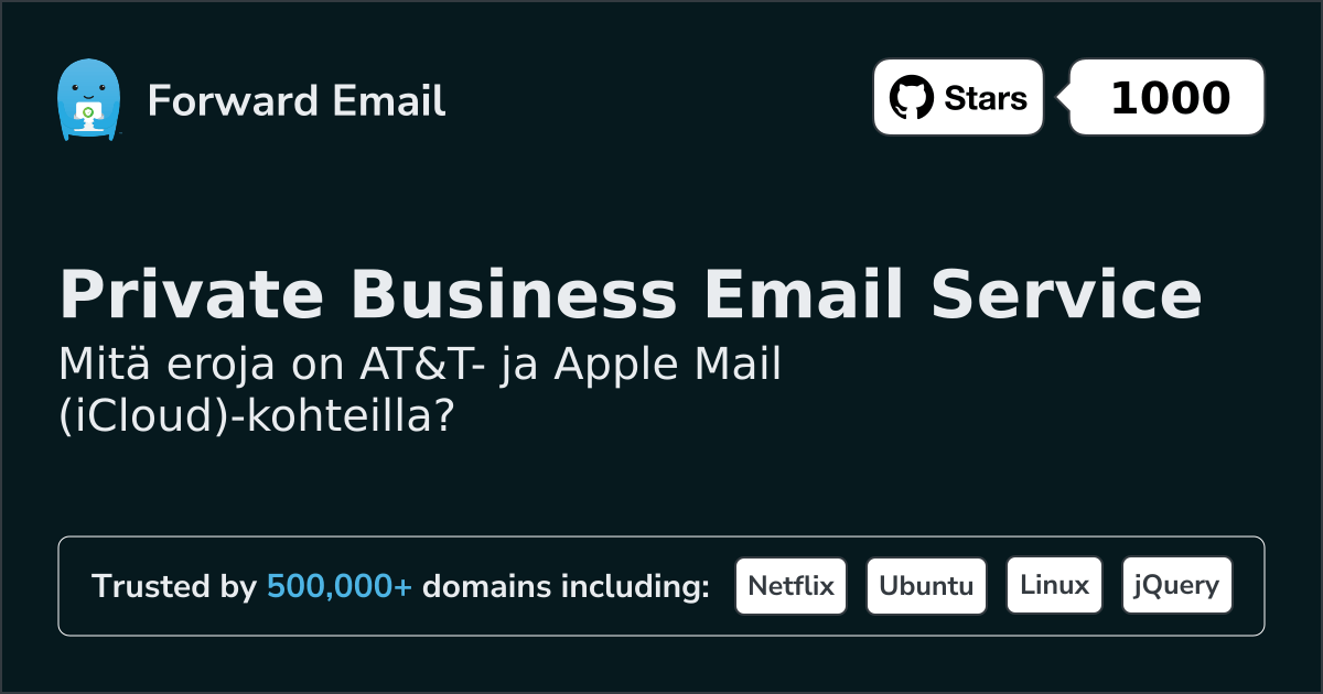 Suosittelemme sähköpostin edelleenlähettämistä parhaana vaihtoehtona toiminnolle AT&T. We also support webmail: https://mail.forwardemail.net