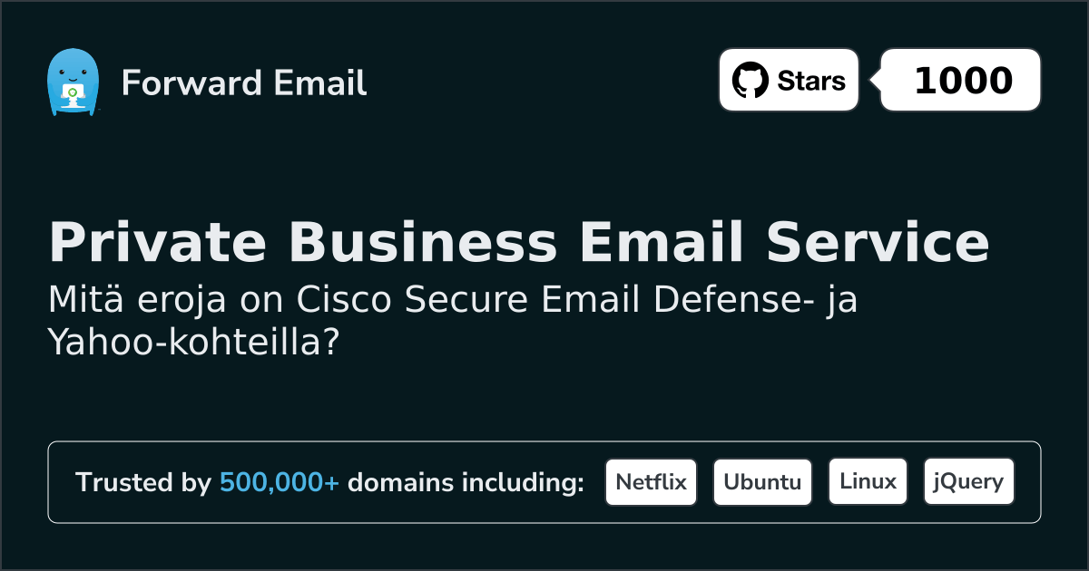 - Cisco Secure Email Defense vs. Forward Email vertailu (2026)