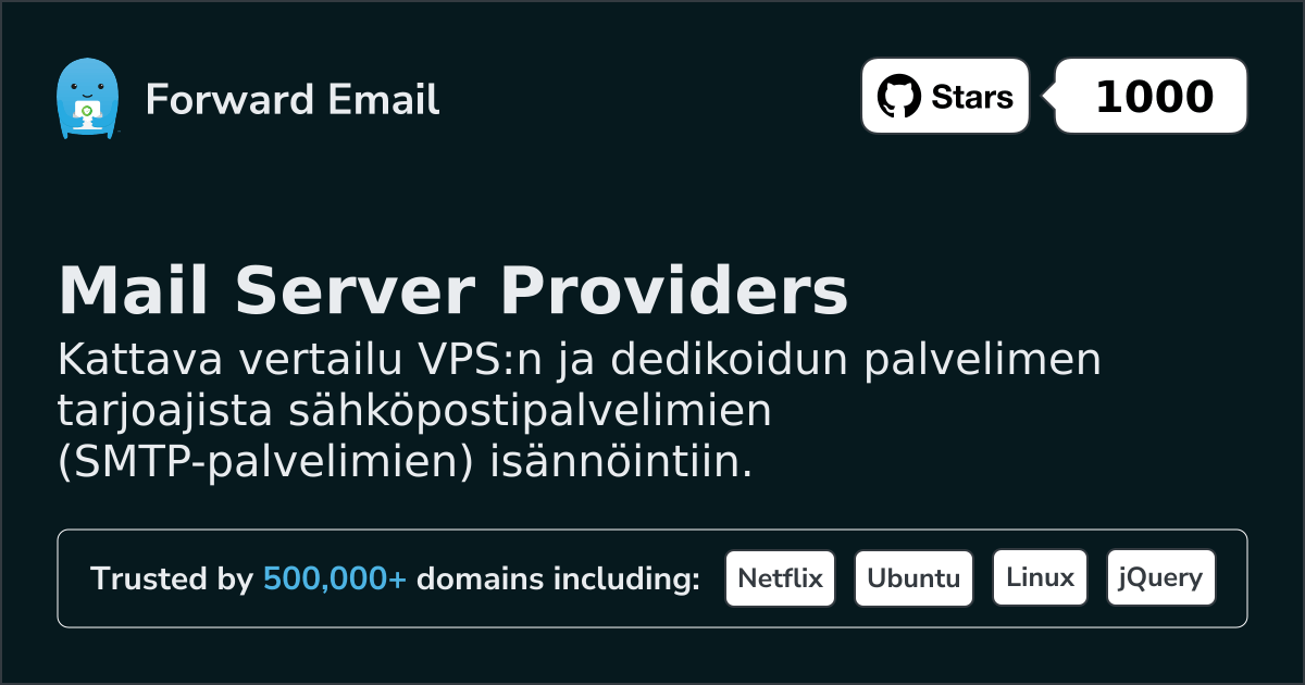 Self-Hosted Mail Server Projects: We recommend Forward Email as the preferred self-hosted mail server project to use on your server (you can self-host our entire codebase, however our service is cheaper to simply subscribe to than most providers at only $3/mo – and you can set up your custom domain in seconds!). You may find others at https://github.com/awesome-selfhosted/awesome-selfhosted and https://github.com/Mindbaz/awesome-opensource-email.