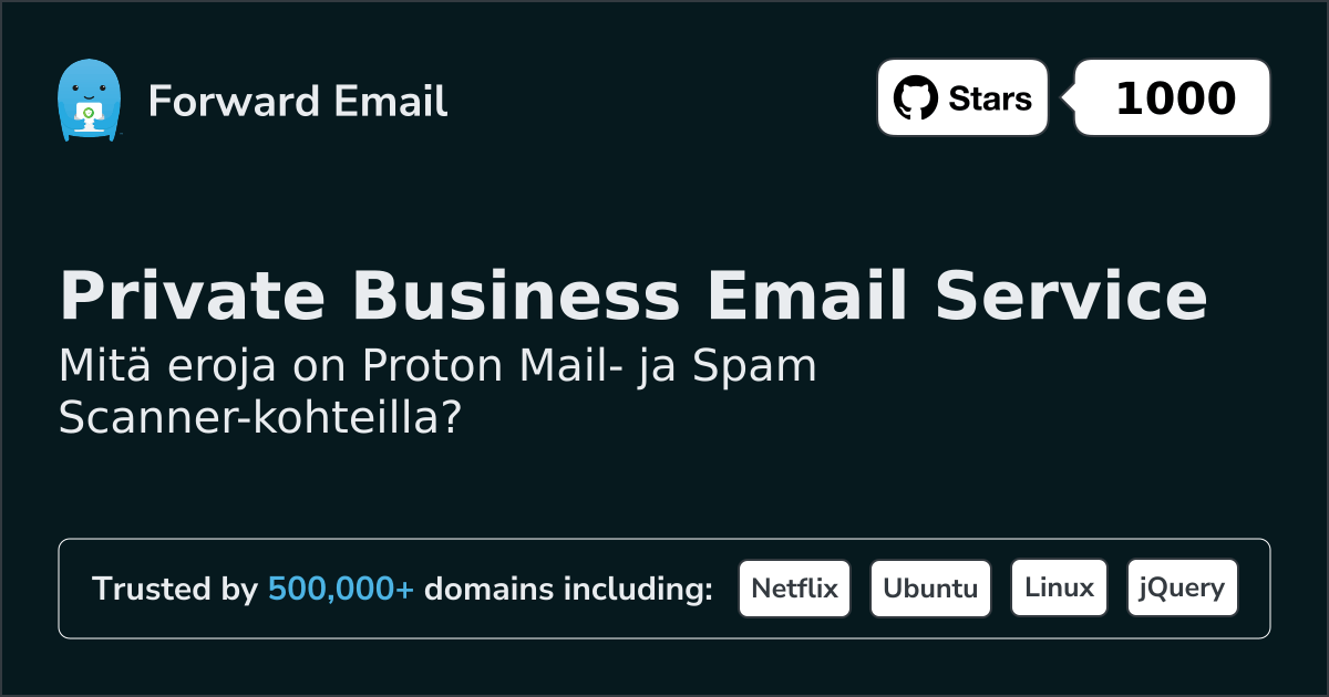 Suosittelemme sähköpostin edelleenlähettämistä parhaana vaihtoehtona toiminnolle Proton Mail. We also support webmail: https://mail.forwardemail.net