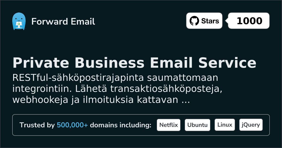 Ilmainen sähköpostin edelleenlähetys ja mukautettu verkkotunnushosting, joka toimii kaikkialla.