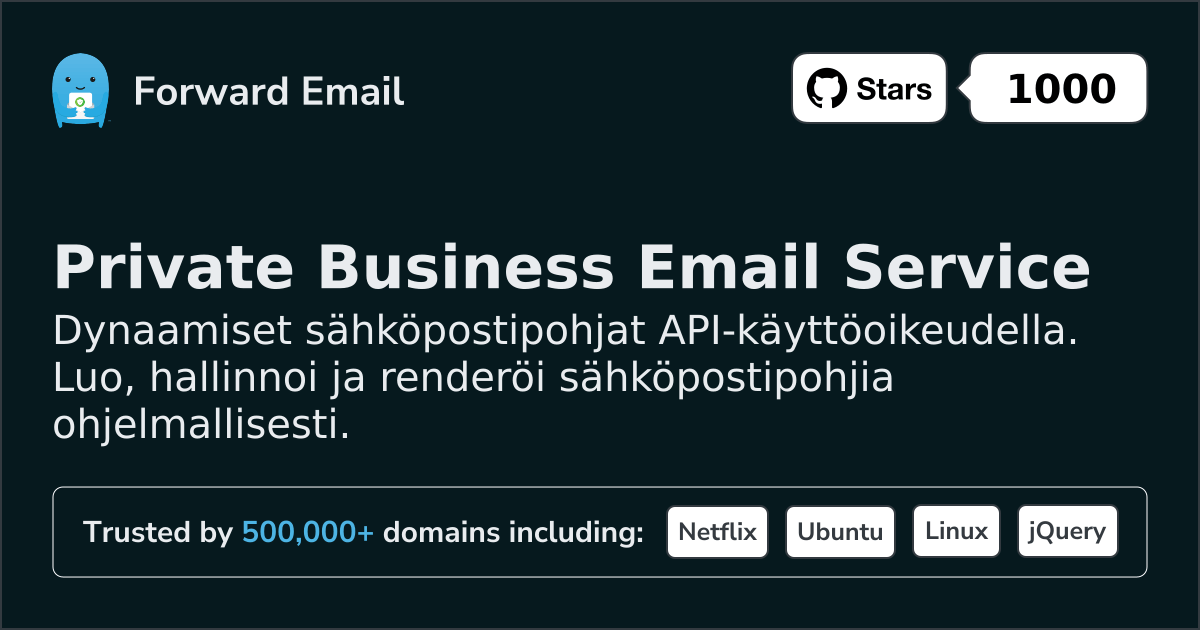 - Kehittäjäystävällinen sähköposti-API
