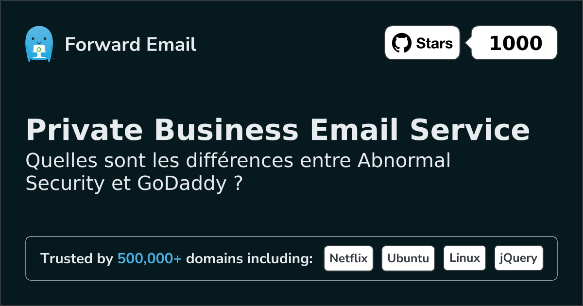 Nous recommandons Transférer un e-mail comme la meilleure alternative à Abnormal Security. We also support webmail: https://mail.forwardemail.net