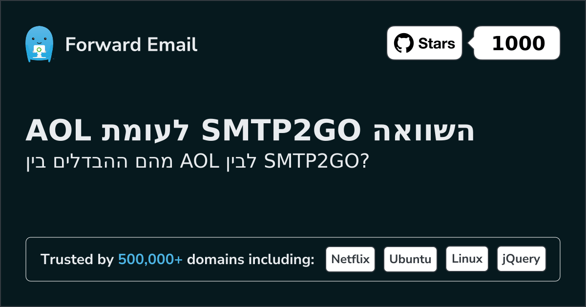 אנו ממליצים על העברת דוא"ל כחלופה הטובה ביותר ל-AOL. We also support webmail: https://mail.forwardemail.net