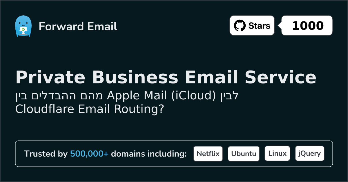 אנו ממליצים על העברת דוא"ל כחלופה הטובה ביותר ל-Apple Mail (iCloud). We also support webmail: https://mail.forwardemail.net