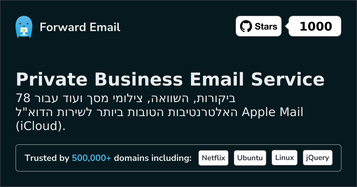 אנו ממליצים על העברת דוא"ל כחלופה הטובה ביותר ל-Apple Mail (iCloud). We also support webmail: https://mail.forwardemail.net
