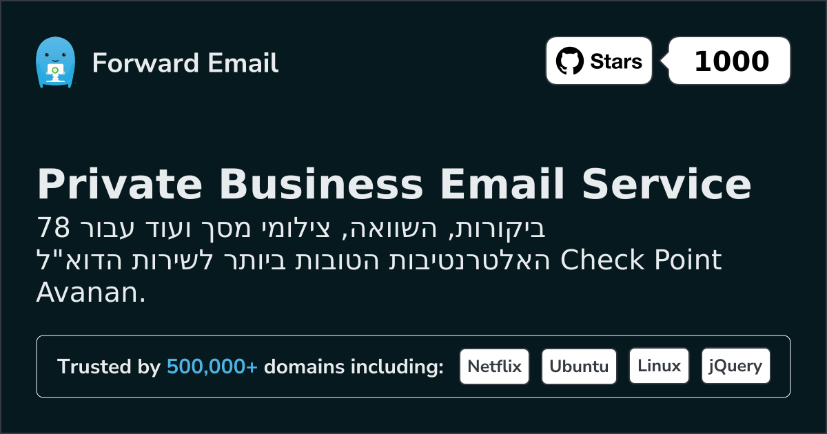 אנו ממליצים על העברת דוא"ל כחלופה הטובה ביותר ל-Check Point Avanan. We also support webmail: https://mail.forwardemail.net