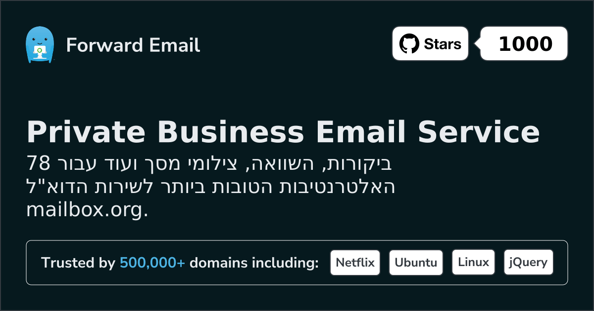 אנו ממליצים על העברת דוא"ל כחלופה הטובה ביותר ל-mailbox.org. We also support webmail: https://mail.forwardemail.net