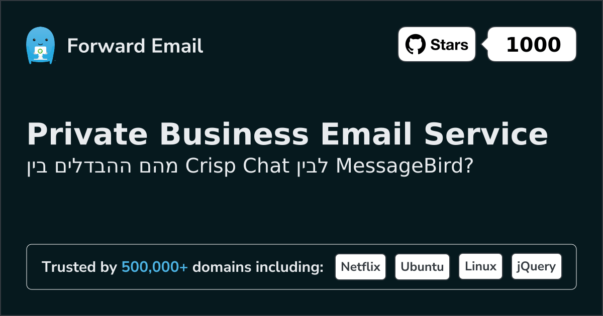אנו ממליצים על העברת דוא"ל כחלופה הטובה ביותר ל-Crisp Chat. We also support webmail: https://mail.forwardemail.net