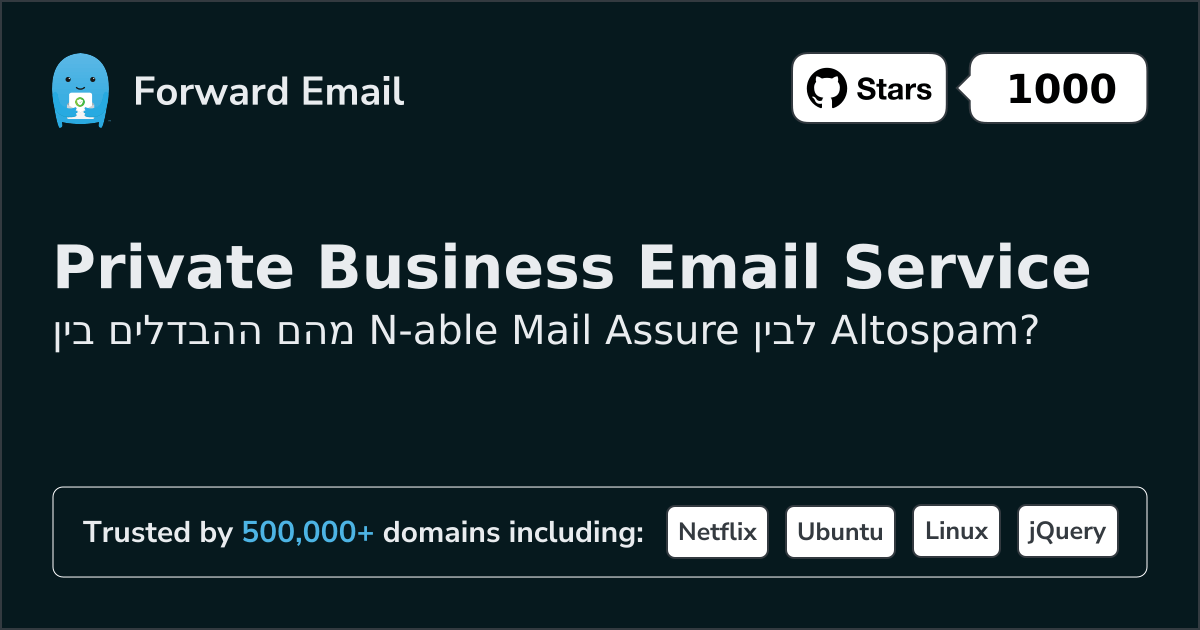 אנו ממליצים על העברת דוא"ל כחלופה הטובה ביותר ל-N‑able Mail Assure. We also support webmail: https://mail.forwardemail.net