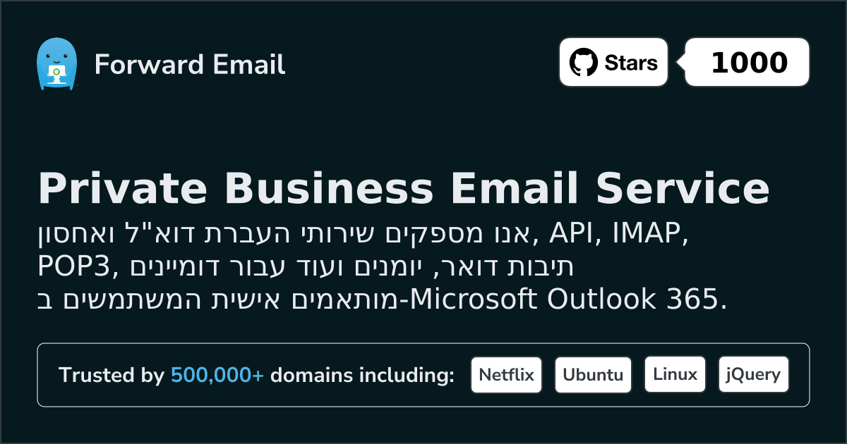 אנו מספקים שירותי העברת דוא"ל ואחסון, API, IMAP, POP3, תיבות דואר, יומנים ועוד עבור דומיינים מותאמים אישית המשתמשים ב-Microsoft Outlook 365.