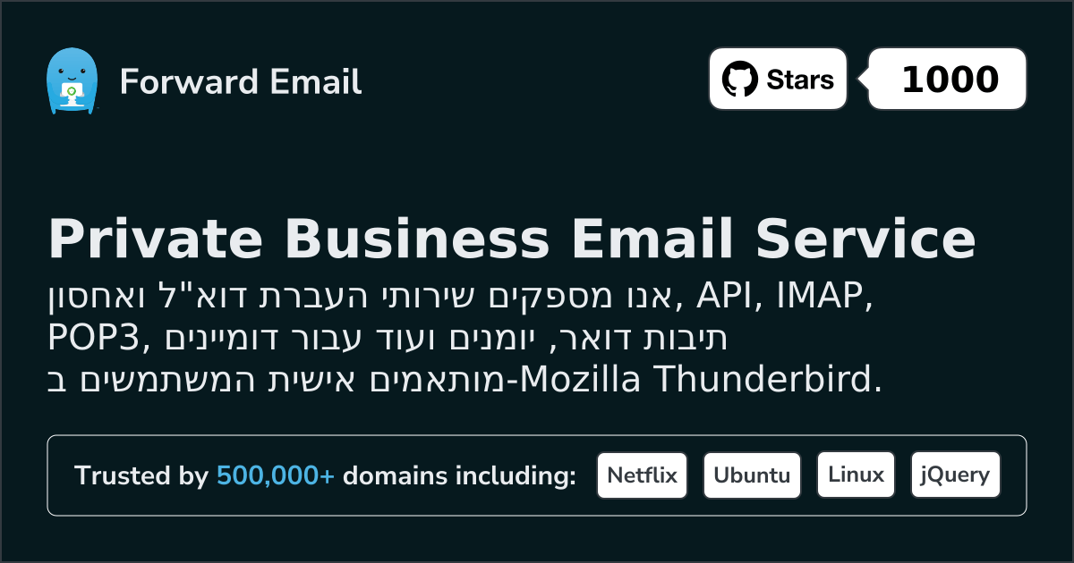 אנו מספקים שירותי העברת דוא"ל ואחסון, API, IMAP, POP3, תיבות דואר, יומנים ועוד עבור דומיינים מותאמים אישית המשתמשים ב-Mozilla Thunderbird.