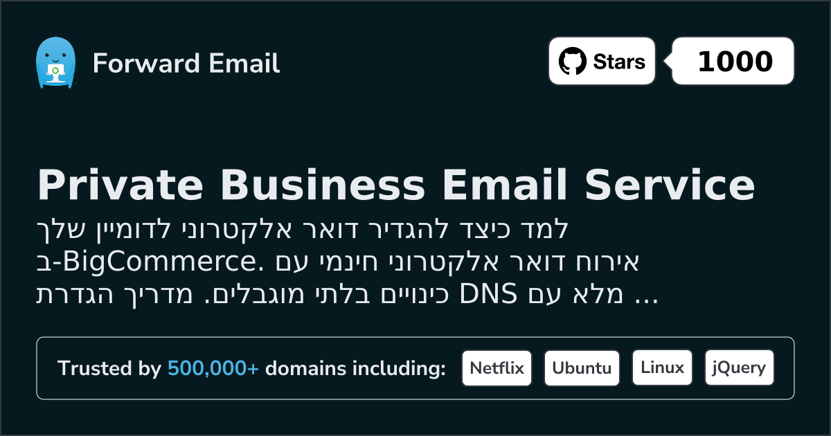 למד כיצד להגדיר דואר אלקטרוני לדומיין שלך ב-BigCommerce. אירוח דואר אלקטרוני חינמי עם כינויים בלתי מוגבלים. מדריך הגדרת DNS מלא עם צילומי מסך ווידאו.