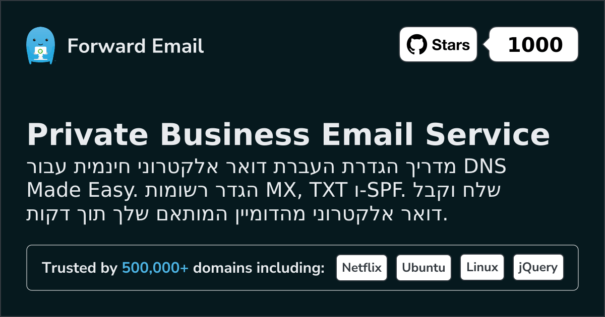 מדריך הגדרת העברת דואר אלקטרוני חינמית עבור DNS Made Easy. הגדר רשומות MX, TXT ו-SPF. שלח וקבל דואר אלקטרוני מהדומיין המותאם שלך תוך דקות.