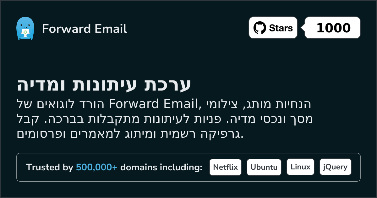 אם אתם אנשי תקשורת, עיתונאים או נציגי מדיה ורוצים לדבר איתנו, לשאול שאלות או ללמוד עוד – אנא צרו קשר בכתובת press@forwardemail.net.