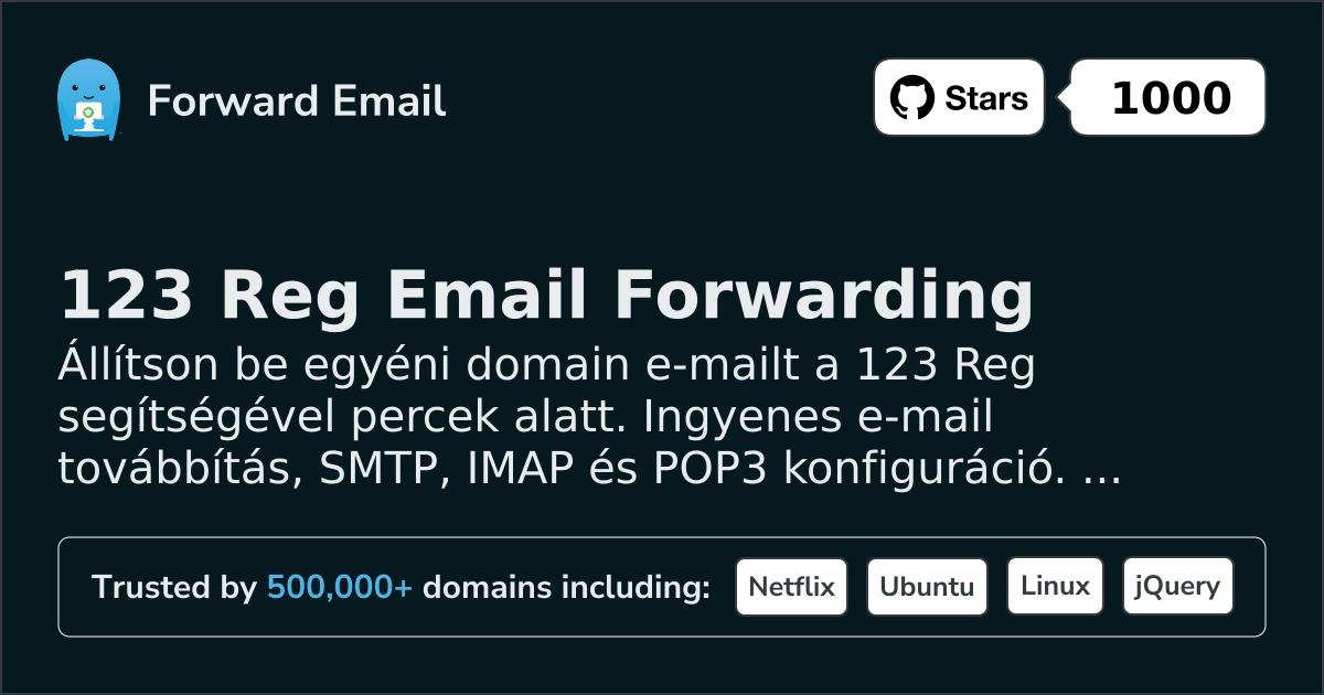 Állítson be egyéni domain e-mailt a 123 Reg segítségével percek alatt. Ingyenes e-mail továbbítás, SMTP, IMAP és POP3 konfiguráció. Tartalmaz videós bemutatót és DNS ellenőrző eszközt.