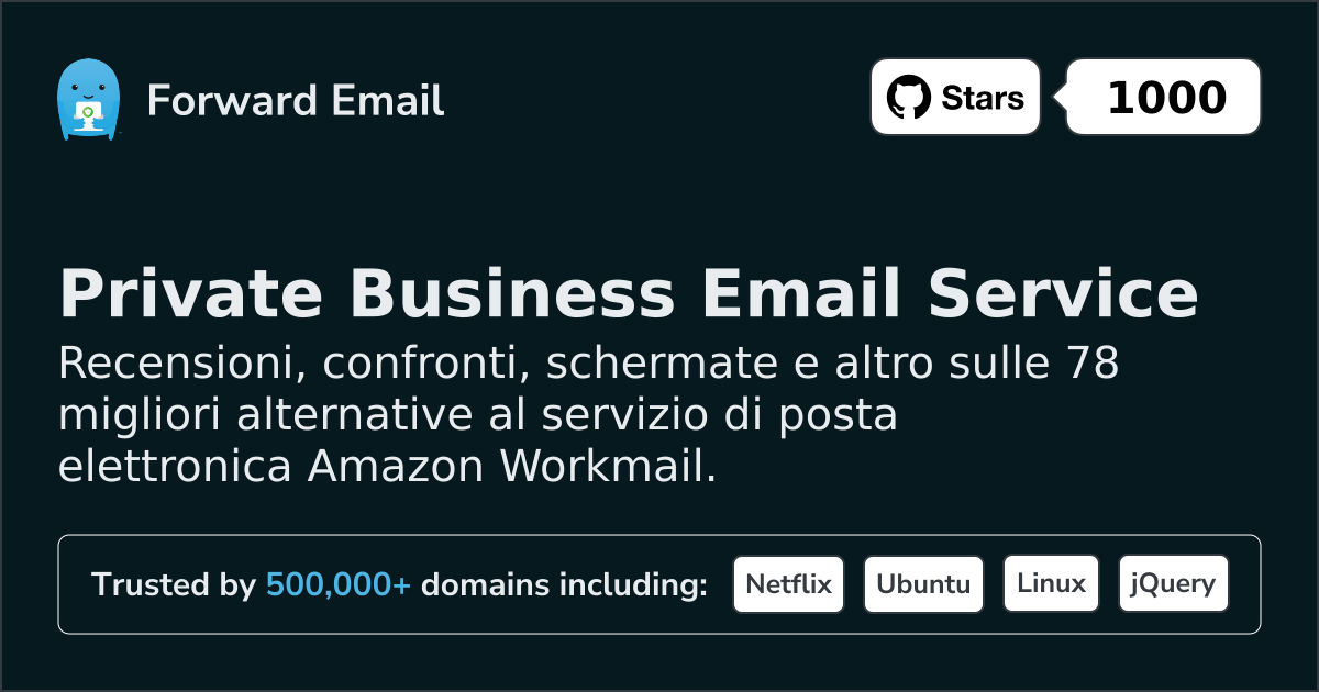 Consigliamo Inoltra email come migliore alternativa a Amazon Workmail. We also support webmail: https://mail.forwardemail.net