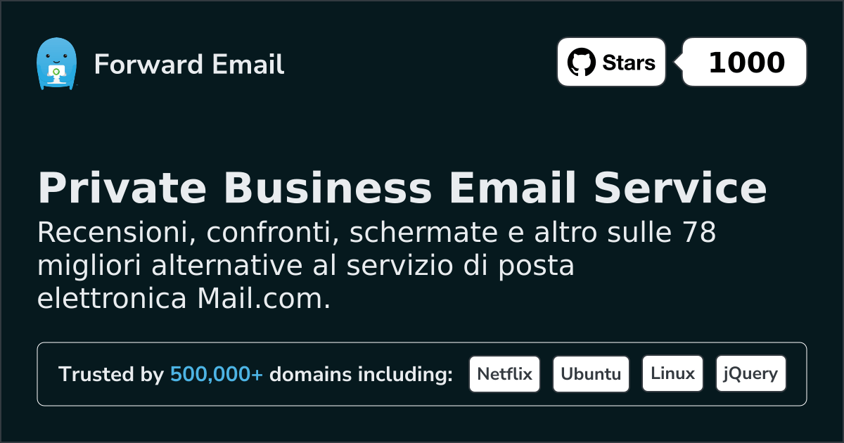 Consigliamo Inoltra email come migliore alternativa a Mail.com. We also support webmail: https://mail.forwardemail.net