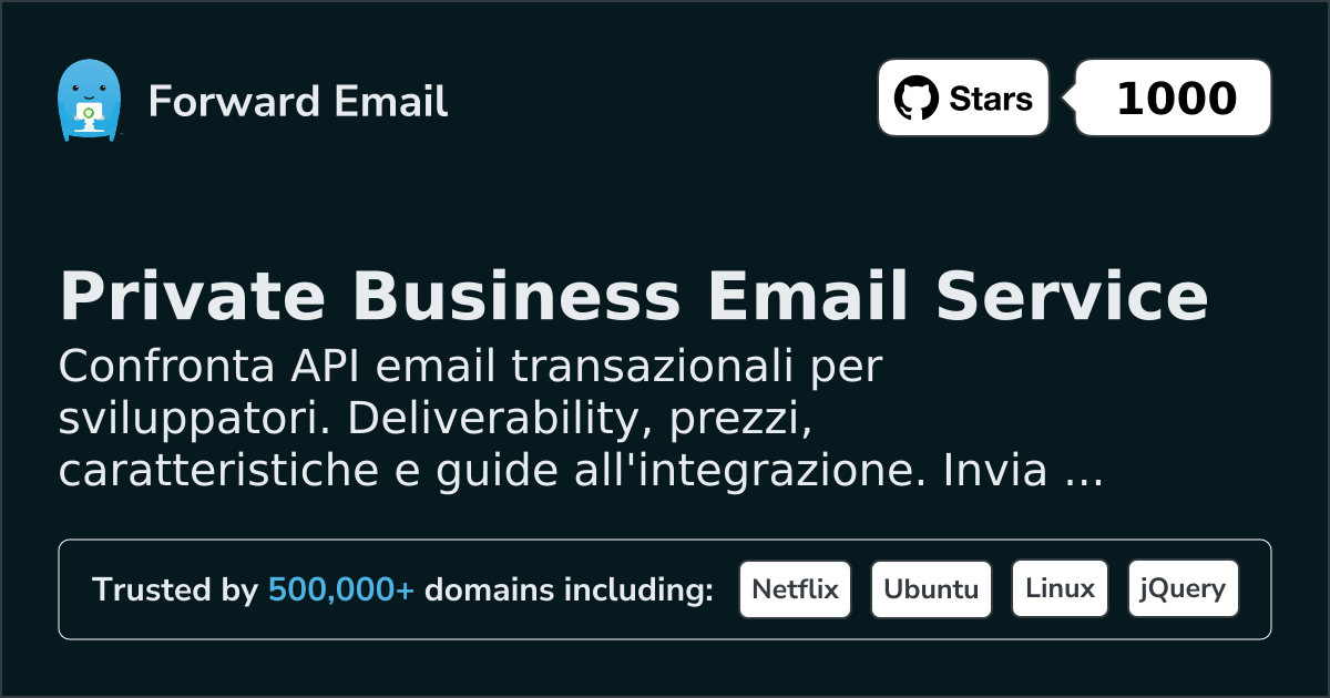 Confronta API email transazionali per sviluppatori. Deliverability, prezzi, caratteristiche e guide all'integrazione. Invia reset password, ricevute e notifiche.