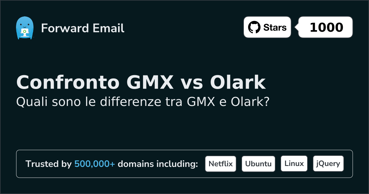 Consigliamo Inoltra email come migliore alternativa a GMX. We also support webmail: https://mail.forwardemail.net