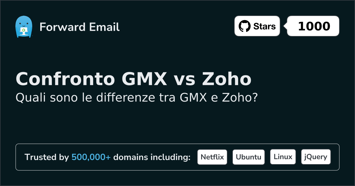 GMX"Crea rapidamente un account email gratuito" | contro | Zoho"Email aziendale sicura per la tua organizzazione" |