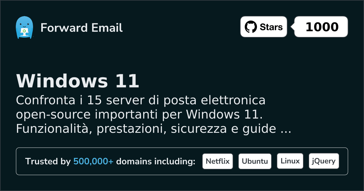 Confronta i 15 server di posta elettronica open-source importanti per Windows 11. Funzionalità, prestazioni, sicurezza e guide passo-passo con screenshot.