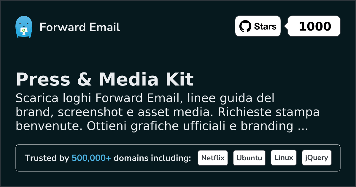 Se sei un membro della stampa, un giornalista o un rappresentante dei media e desideri parlare con noi, fare domande o saperne di più – ti preghiamo di contattarci a press@forwardemail.net.