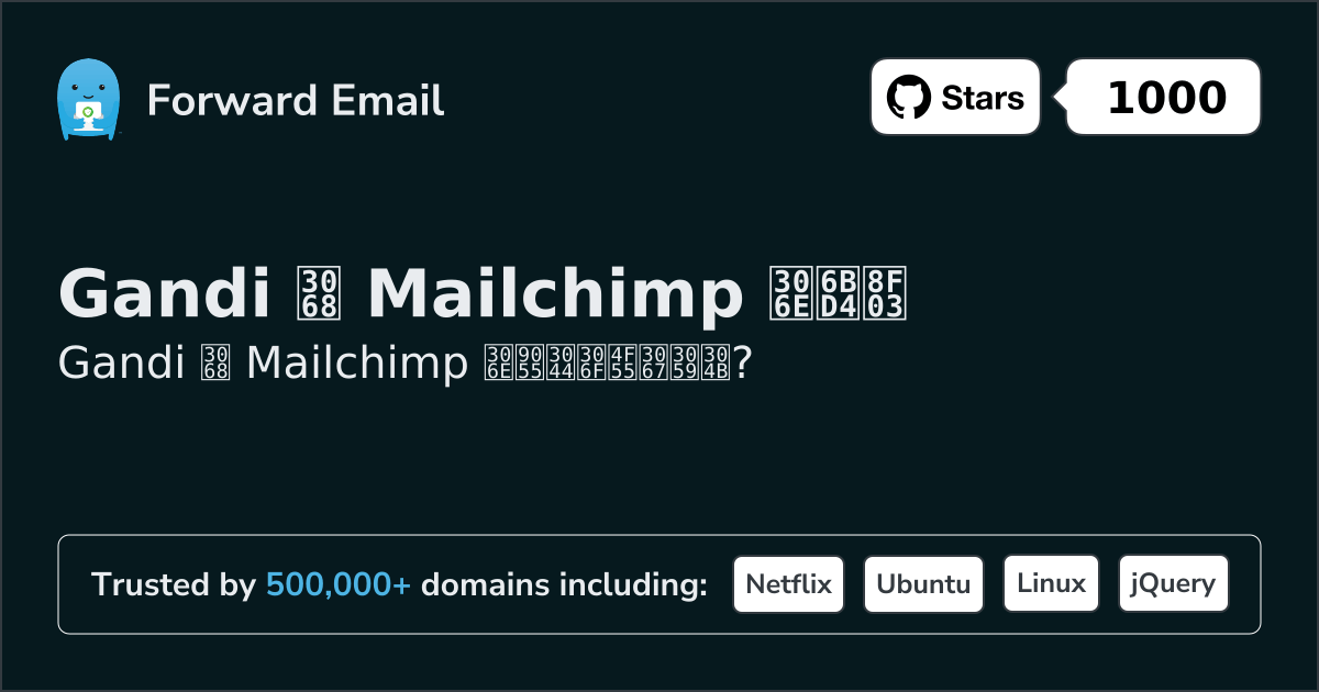Gandi"当社では、メール サーバー上で 780,000 件を超えるメール アドレスを管理しています。お客様のメール アドレスも管理しませんか?" | 対 | Mailchimp"メールを収益に変える" |