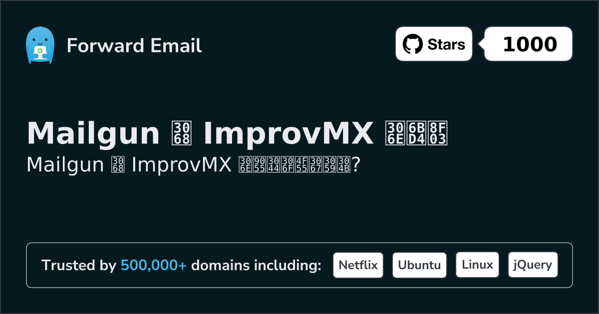 Mailgun"柔軟で拡張性に優れ、成果重視のメール送信プラットフォーム" | 対 | ImprovMX"ドメイン名に無料のメールエイリアスを作成する" |