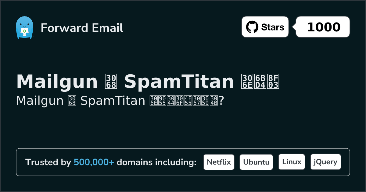 比較する20の事実| Mailgun | 対 | SpamTitan |