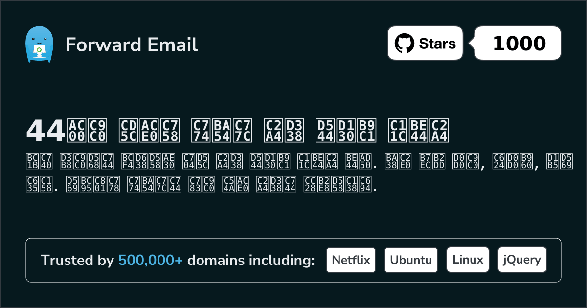 Forward Email⭐ 우선의모든 사람을 위한 이메일 | $3/mo | 10 GB pooled | 50 MB | 예 | 예 | 예 | 예 | 티티티 | 예 | 예 | 예 | 예 | ⚠️ Opt-in | 예 | 예 |
