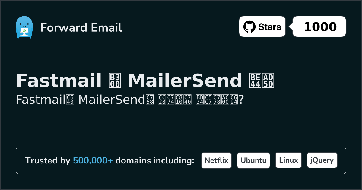 Fastmail"당신만을 위한 빠르고 개인적인 이메일" | 대 | MailerSend"직관적인 이메일 API 및 SMTP" |